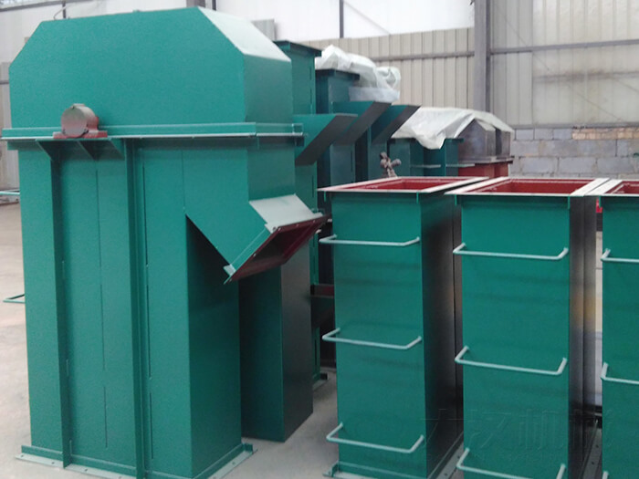 淺斗的斗中與料斗后壁的夾角小,每個料斗的裝載量小,但容易卸空,適于運送潮濕的和粘性的物料。深和淺斗在斗式提升及沿牽引構件長度方向間隔一定距離地固定在牽引構件上。