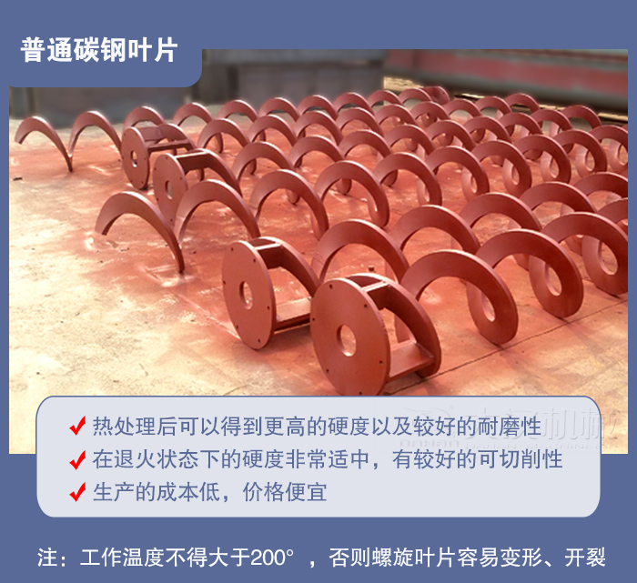 螺旋輸送機(jī)應(yīng)用廣泛,常用于物料的輸送,塊狀、顆粒狀、粉狀等物料,或者一些高溫、腐蝕物料,代替了人工的搬運(yùn),效率更高。常見(jiàn)的螺旋葉片有普通碳鋼葉片,高錳鋼葉片以及不銹鋼葉片。