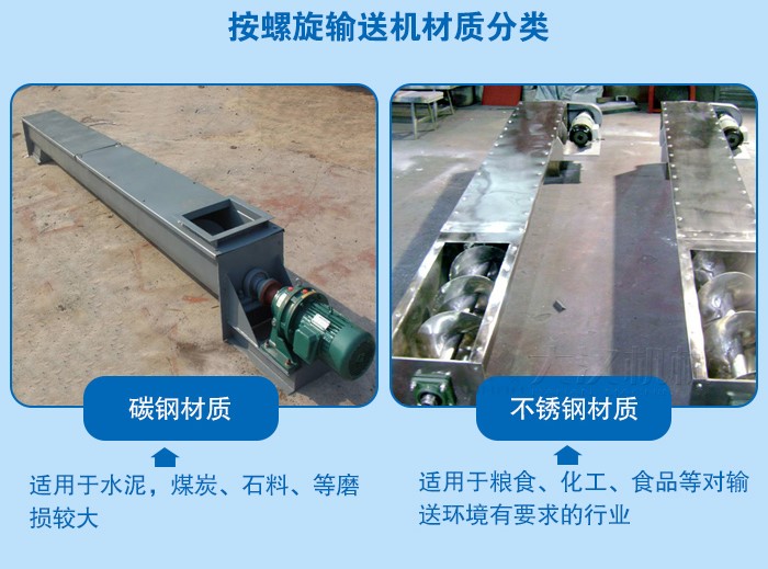 2、不銹鋼U型螺旋輸送機(jī)-主要適用于糧食、化工、食品等對(duì)輸送環(huán)境有要求的行業(yè),清潔度高,并且不會(huì)對(duì)物料產(chǎn)生污染,使用時(shí)間長(zhǎng),但是造價(jià)相對(duì)較高。