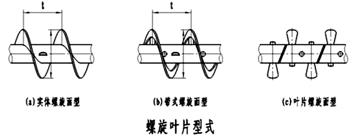 物料的形狀和有無(wú)磨琢性關(guān)系到適宜的填充系數(shù)和推薦的螺旋葉片形式。例如: