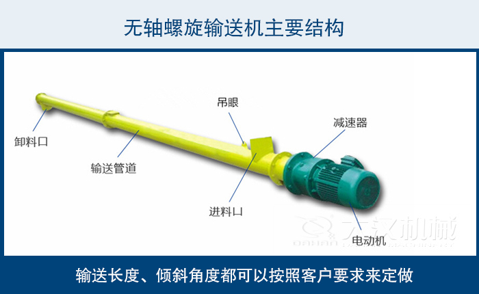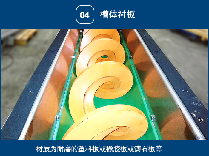 驅(qū)動、殼體、襯板、葉片、 支架、蓋板、進(jìn)料口、出料口,輸送長度、傾斜角度都可以按照客戶要求來定做,不同物料不同輸送角度我們?yōu)槟侠磉x型!