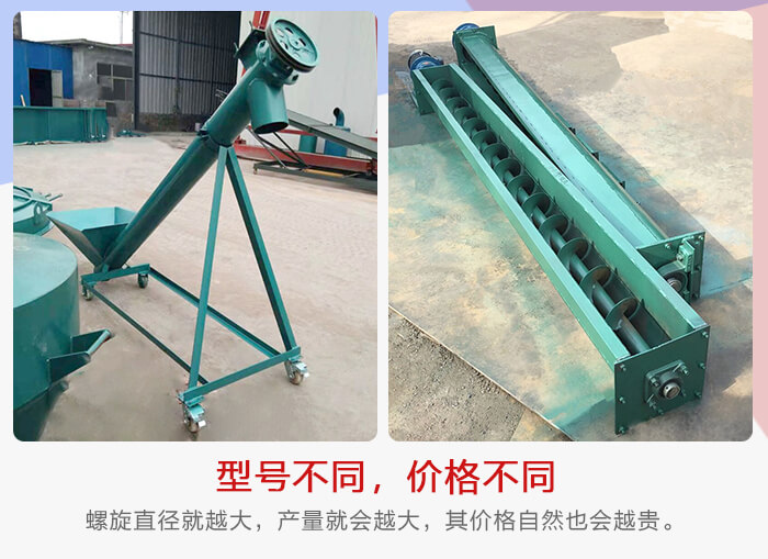 以大漢機械為例,其生產的螺旋給料機主要有LS螺旋給料機、U型螺旋給料機和無軸螺旋給料機等,不同型號的螺旋給料機的管徑、設計等也會有所不同, 所以其價格會有所變動,型號越大,螺旋直徑就越大,產量就會越大,其價格自然也會越貴。所以對于型號的選擇需要根據用戶輸送物料來合理選擇。