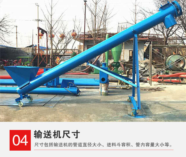 大傾角螺旋輸送機的尺寸包括輸送機的管道直徑大小、進料斗容積、管內容量大小等。這些尺寸都會直接波及大傾角螺旋輸送機的輸送能力,更重要的是價格的高低也受其影響。