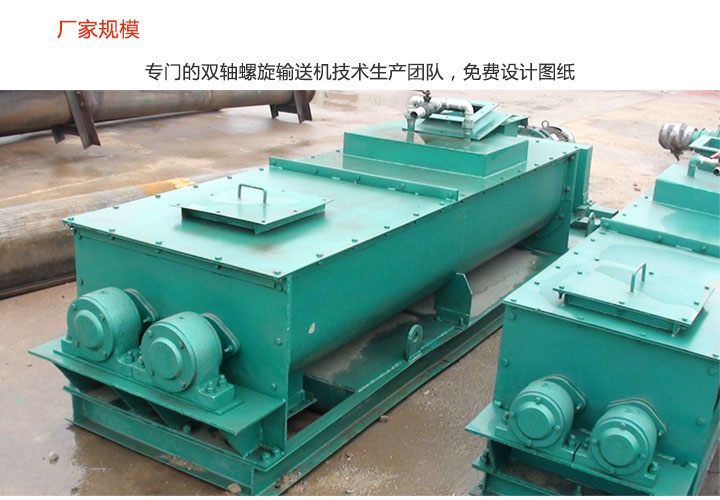 雙軸螺旋輸送機是利用兩根螺旋軸(一正一反)輸送物料,同時具備輸送、混合、攪拌功能,不易堵料;輸送量是單軸的1.5-2倍。
