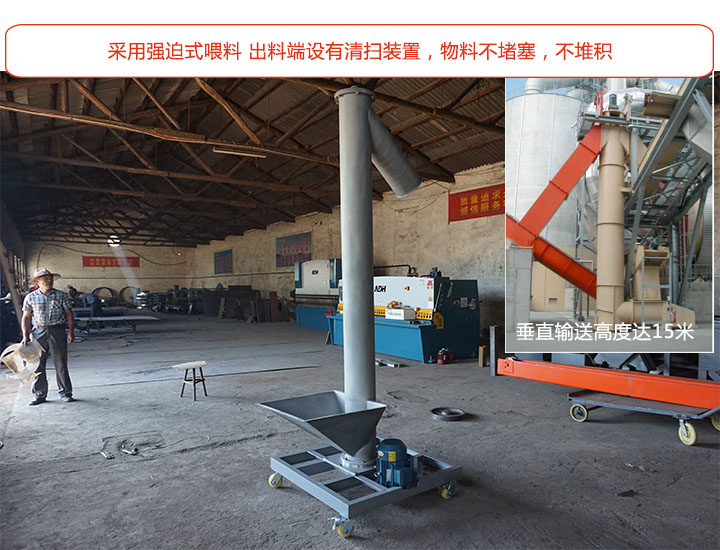 大漢垂直立式螺旋輸送機采用的是強迫式喂料,在出料端安裝有清掃裝置,輸送中物料不堵塞,不堆積;采用垂直(90°)或大傾角輸送,節(jié)省占地面積,垂直輸送高度可達15米,可根據需求選擇。