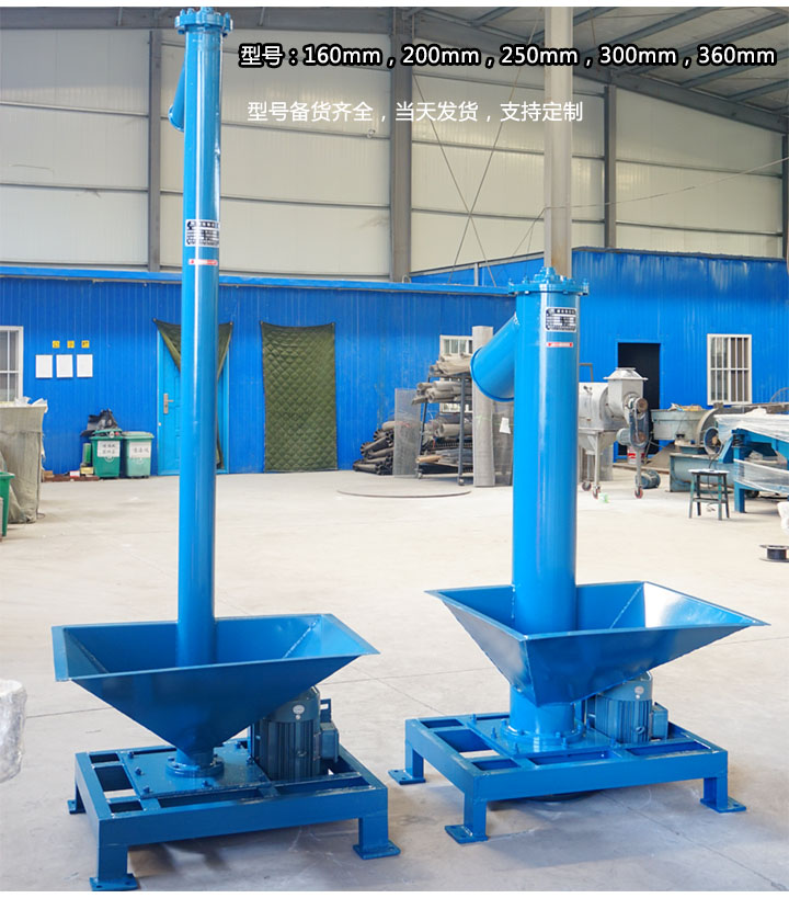 大漢機械的垂直立式螺旋輸送機型號有160,200,250,300,360等5種規(guī)格,且備貨齊全,支持當天發(fā)貨;此外,特定型號可根據用戶描述需求,設計圖紙,進行生產,如移動式垂直立式螺旋輸送機,專用于不固定場所的物料輸送。