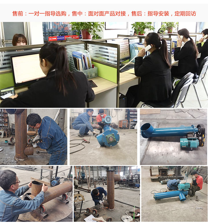 大漢垂直立式螺旋輸送機廠家采用線上,線下雙渠道賣貨,擁有專業(yè)的售前,售中,售后服務團隊,售前一對一指導選購,售中接用戶來廠參觀,專業(yè)技術人員與用戶對接需求;售后專人上門講解設備使用,指導安裝,定期回訪,售后記錄跟蹤。