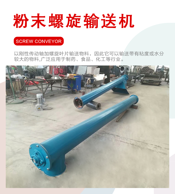 5)粉末螺旋輸送機(jī)由螺旋機(jī)本體、進(jìn)出料口及驅(qū)動(dòng)裝置三部分組成。